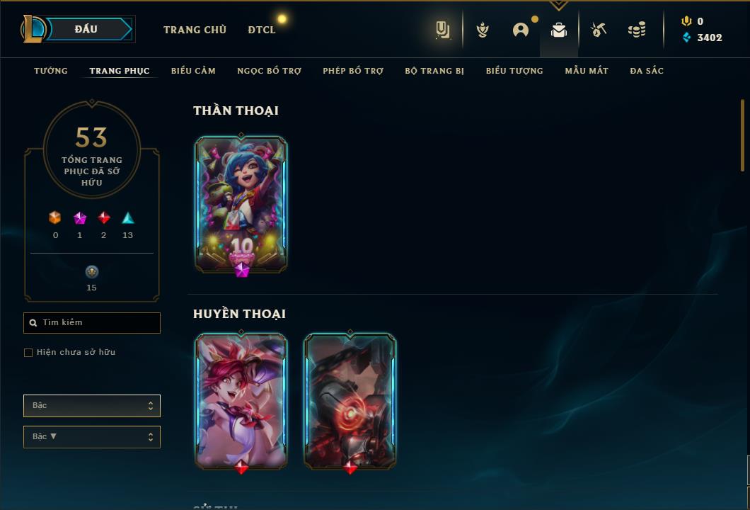 Tất cả tài khoản ĐTCL - LMHT trên web là tài khoản