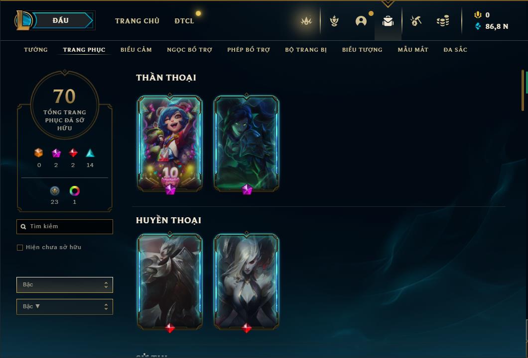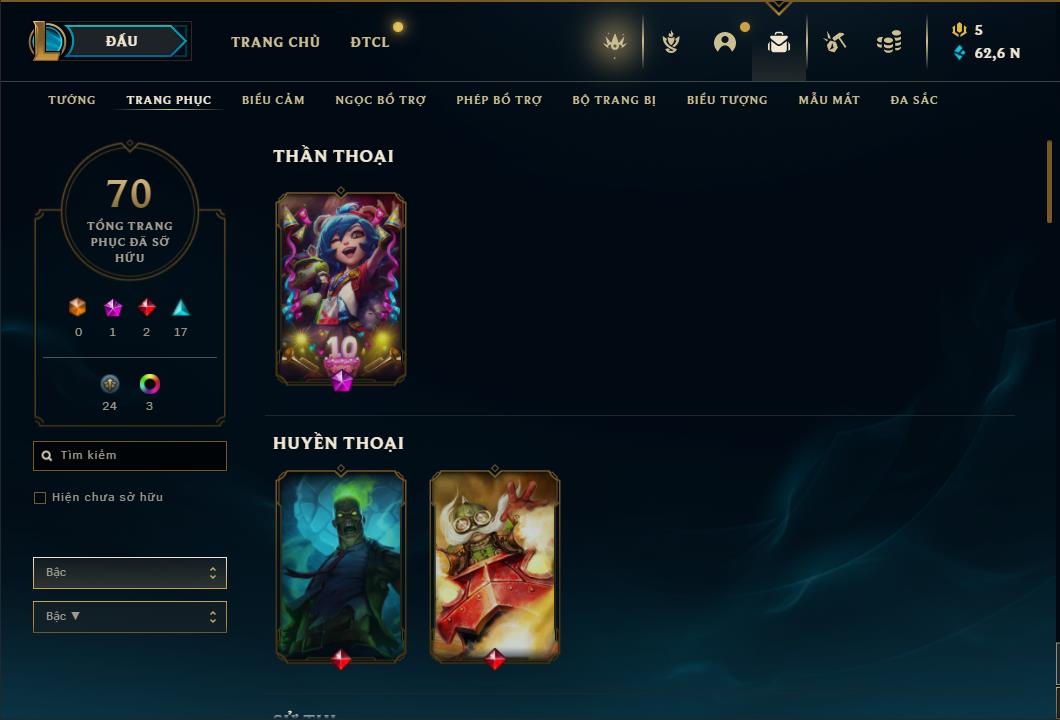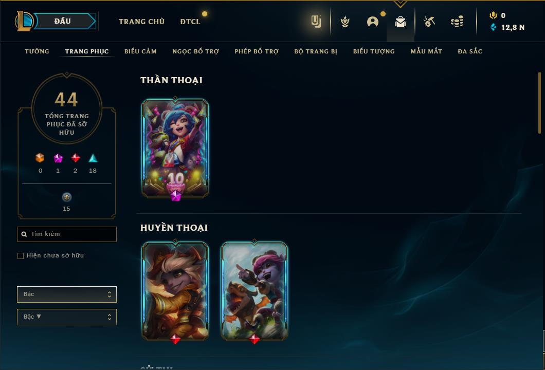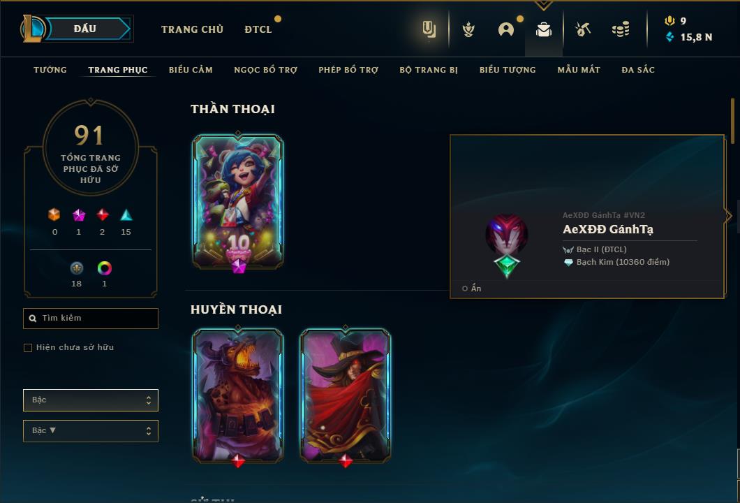 Tất cả tài khoản ĐTCL - LMHT trên web là tài khoản