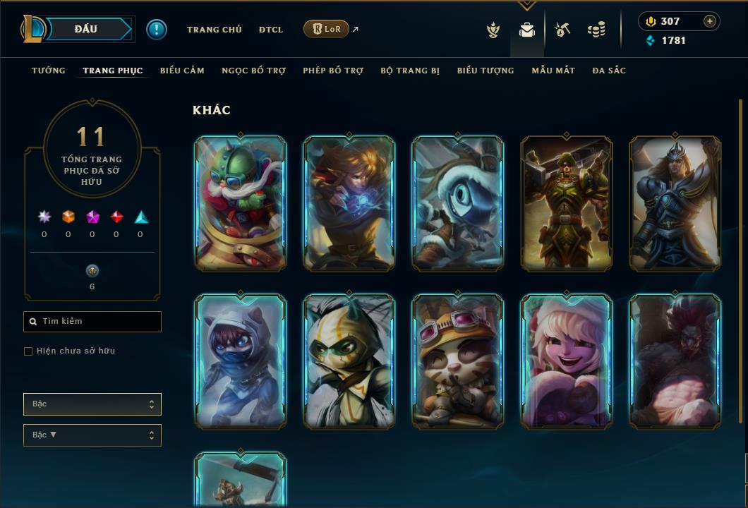 Tất cả tài khoản ĐTCL - LMHT trên web là tài khoản