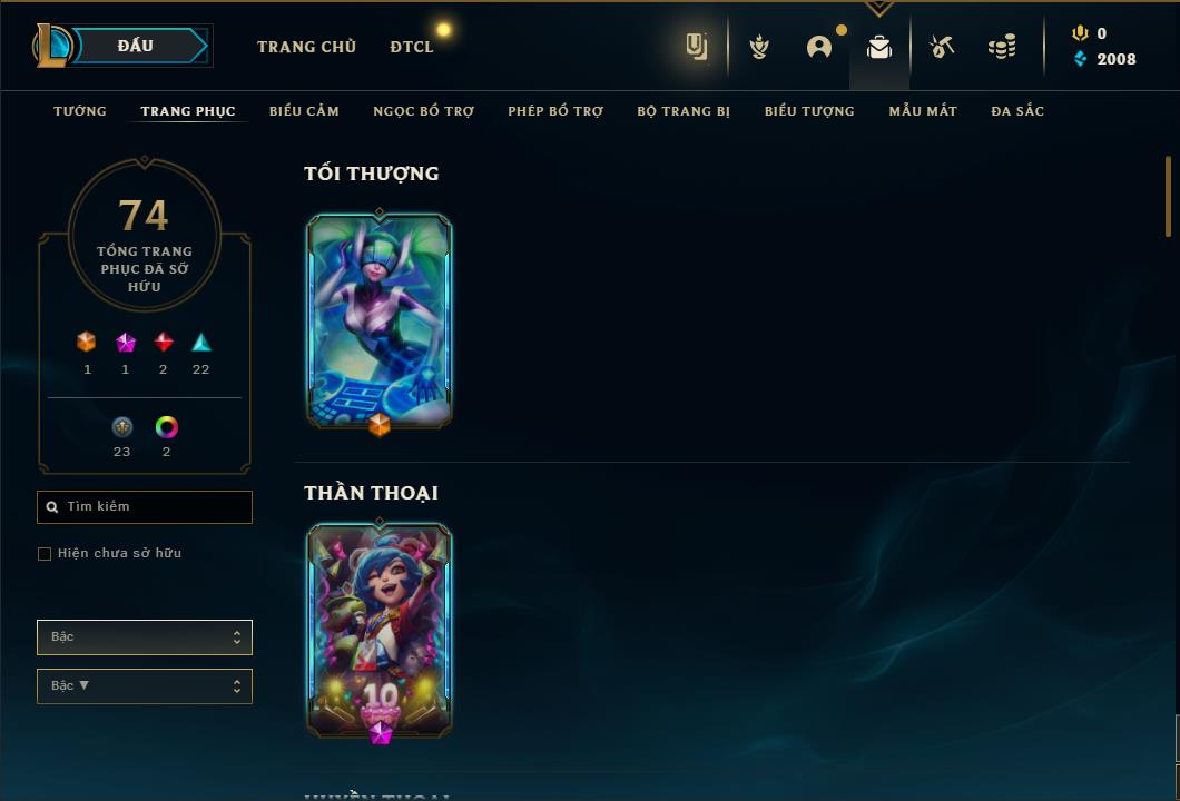 Tất cả tài khoản ĐTCL - LMHT trên web là tài khoản