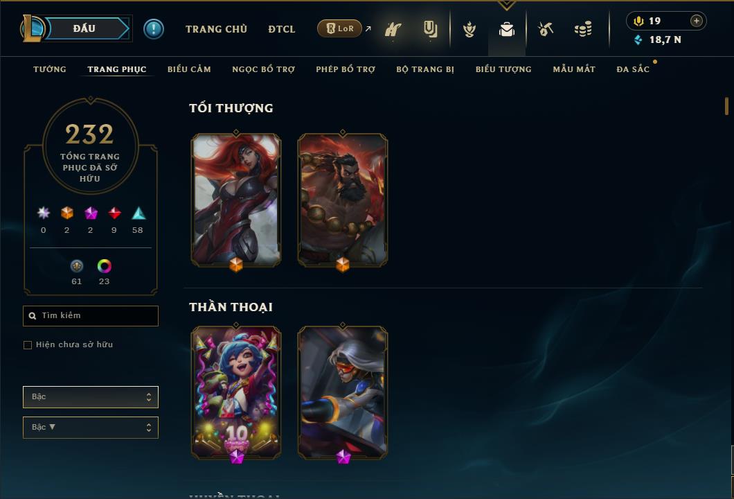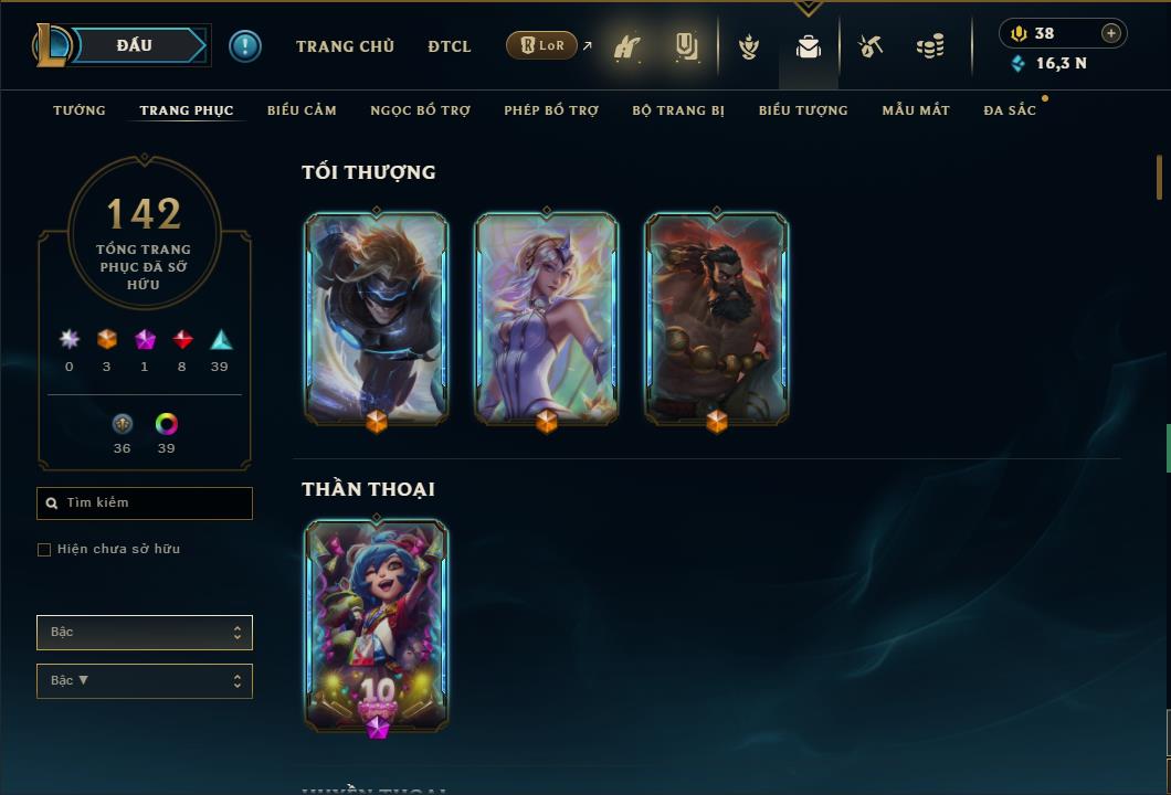 Tất cả tài khoản ĐTCL - LMHT trên web là tài khoản