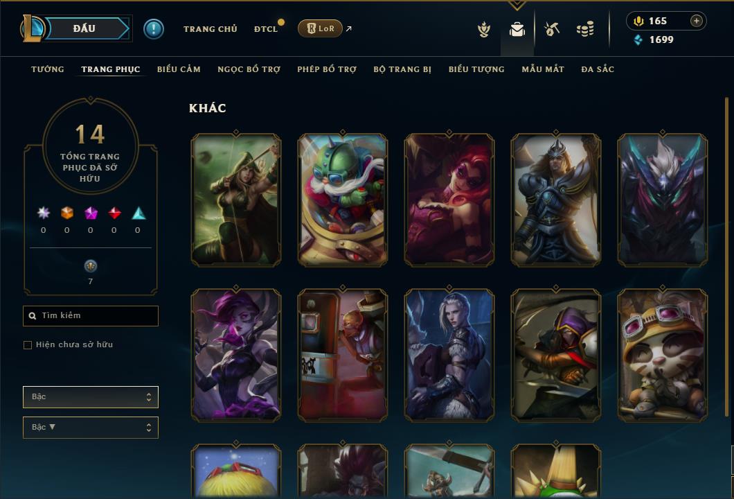 Tất cả tài khoản ĐTCL - LMHT trên web là tài khoản